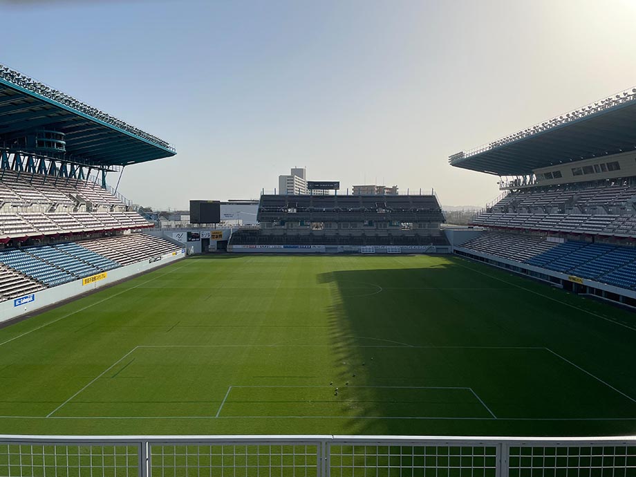 - 国道3号線を久留米方面へ下り、商工団地北入口(鳥栖IC先の姫方交差点より約2.5km)を右折後直進→スタジアム