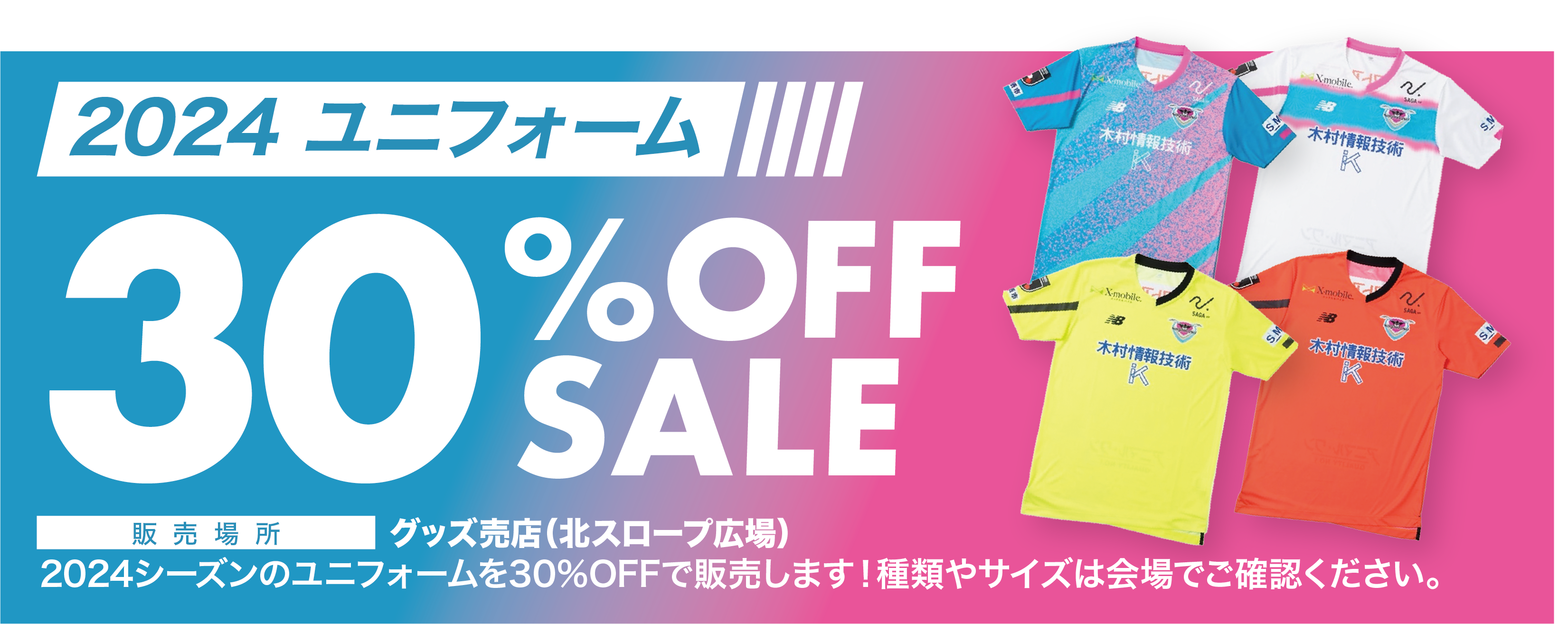 商品詳細 | 23シーズンのユニフォームを5,000円、24シーズンのユニフォームを30%OFFで販売します! 種類やサイズは会場でご確認ください。 |