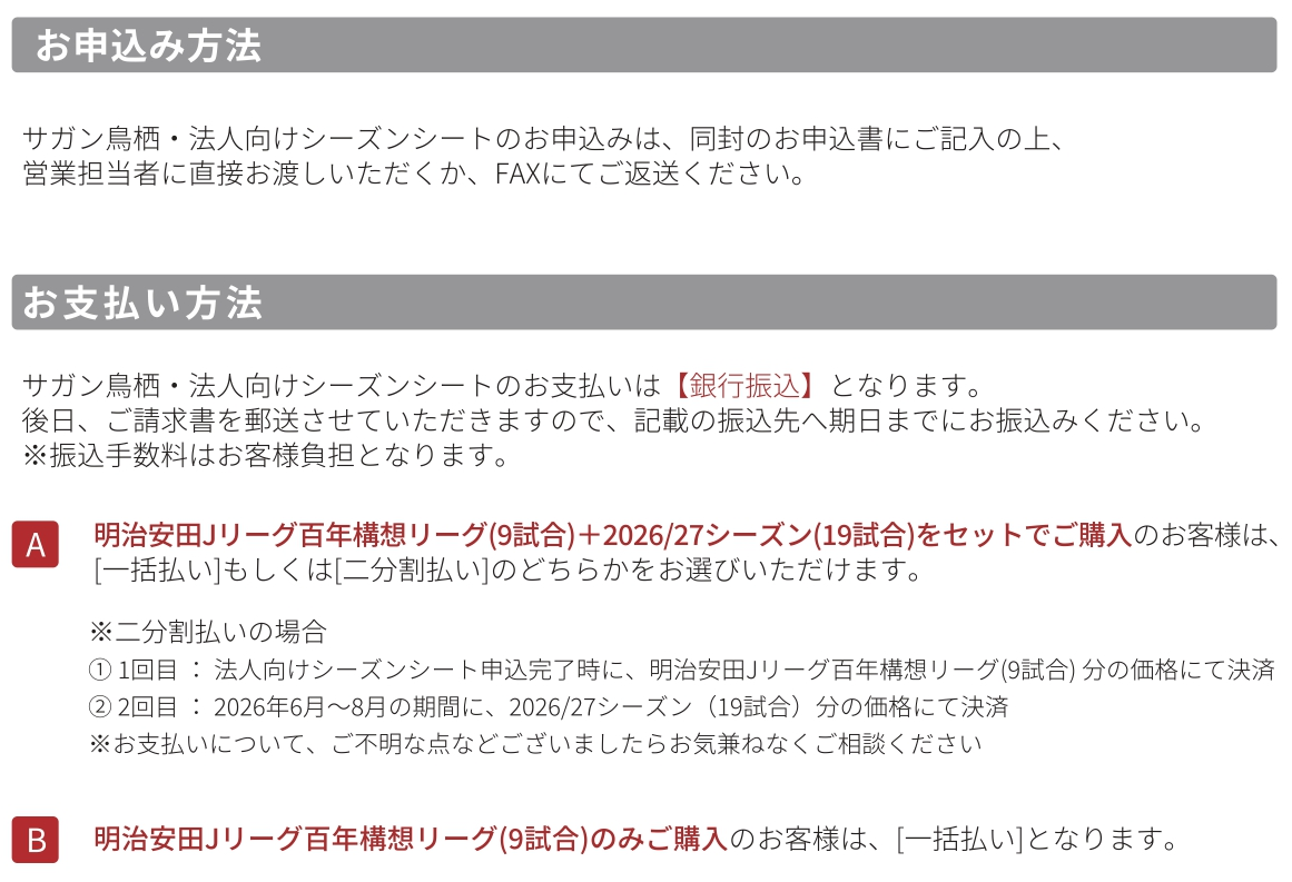 この度、サガン鳥栖では法人様向け年間シーズンシートの販売について、お知らせいたします。